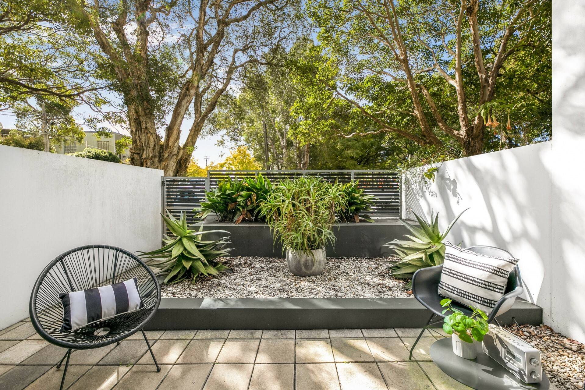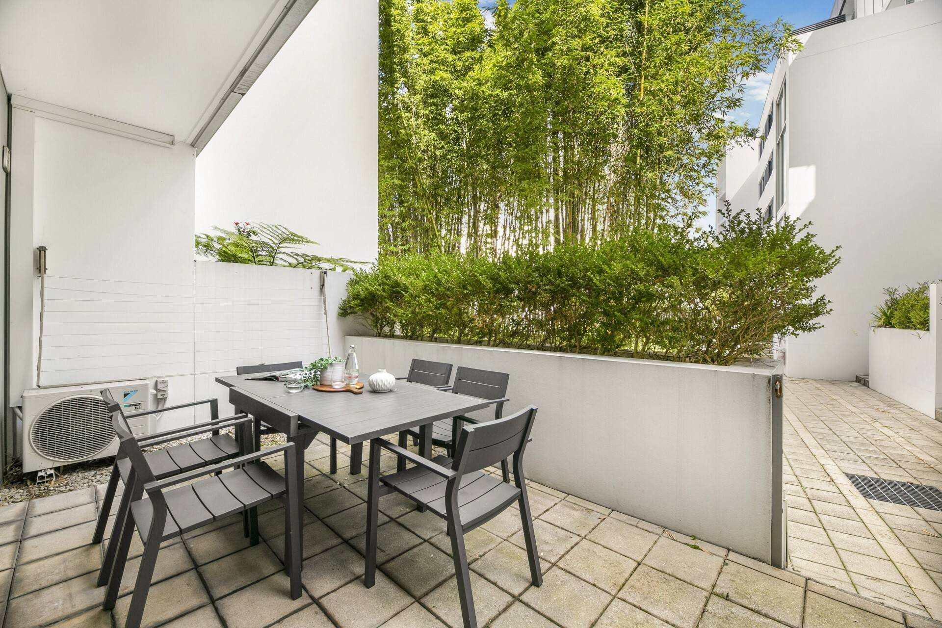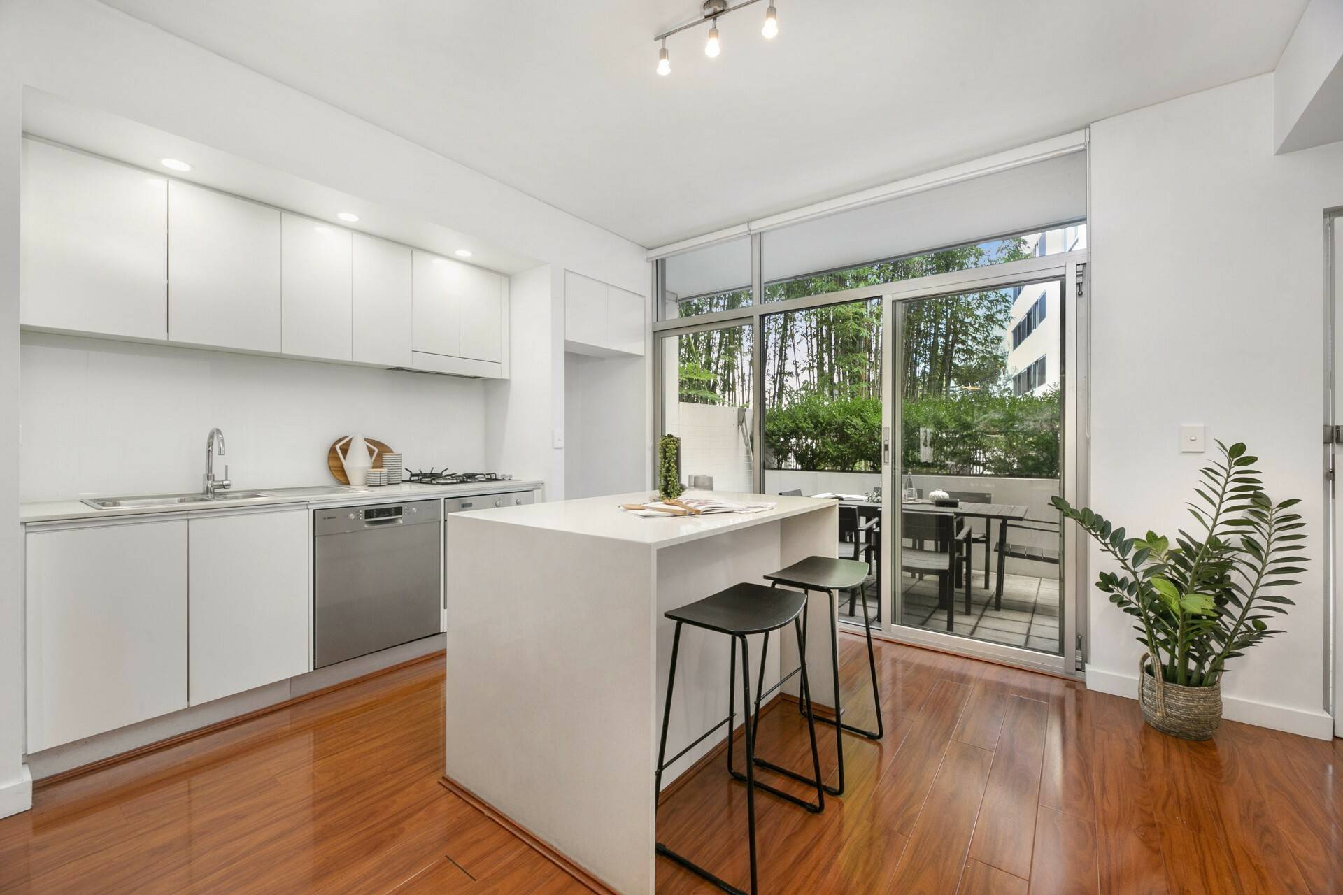 - Alfresco setting next to Sleek Caesarstone kitchen with own rear courtyard entry with access to a common internal courtyard