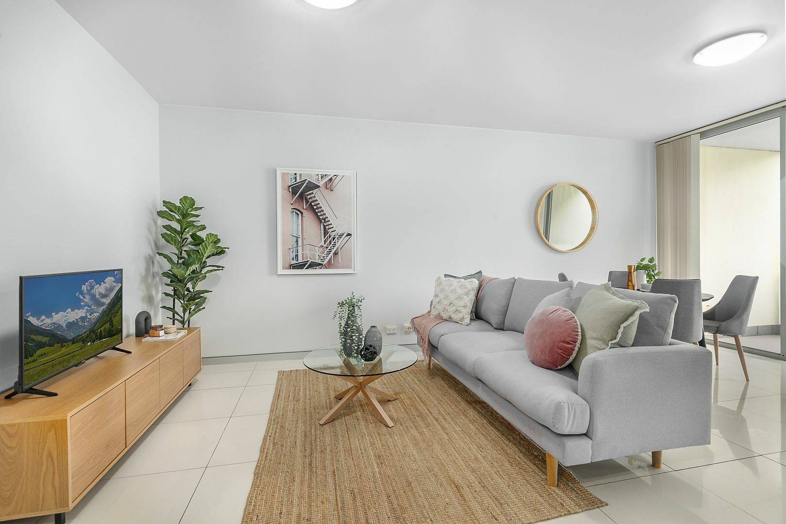 - Airy living/dining area enhanced with floor-to-ceiling doors