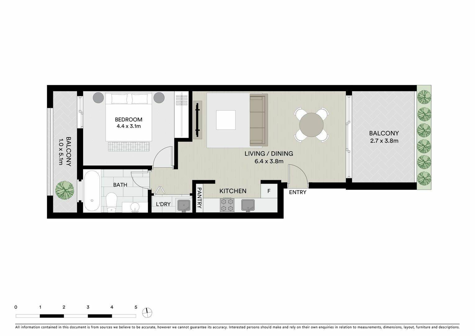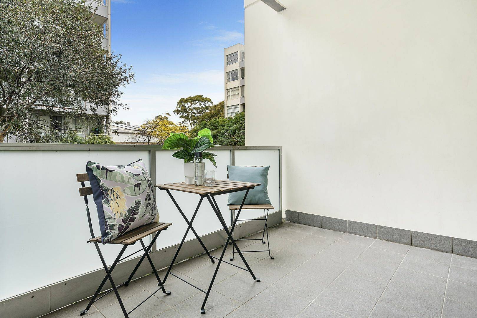 - Balcony with a leafy outlook, ideal setting to entertain
