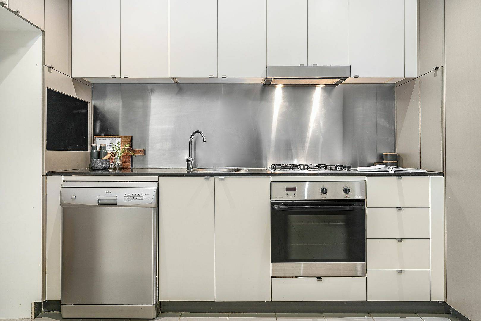 - Modern open plan kitchen, complimented by granite benchtops, stainless-steel appliances and built-in dishwasher