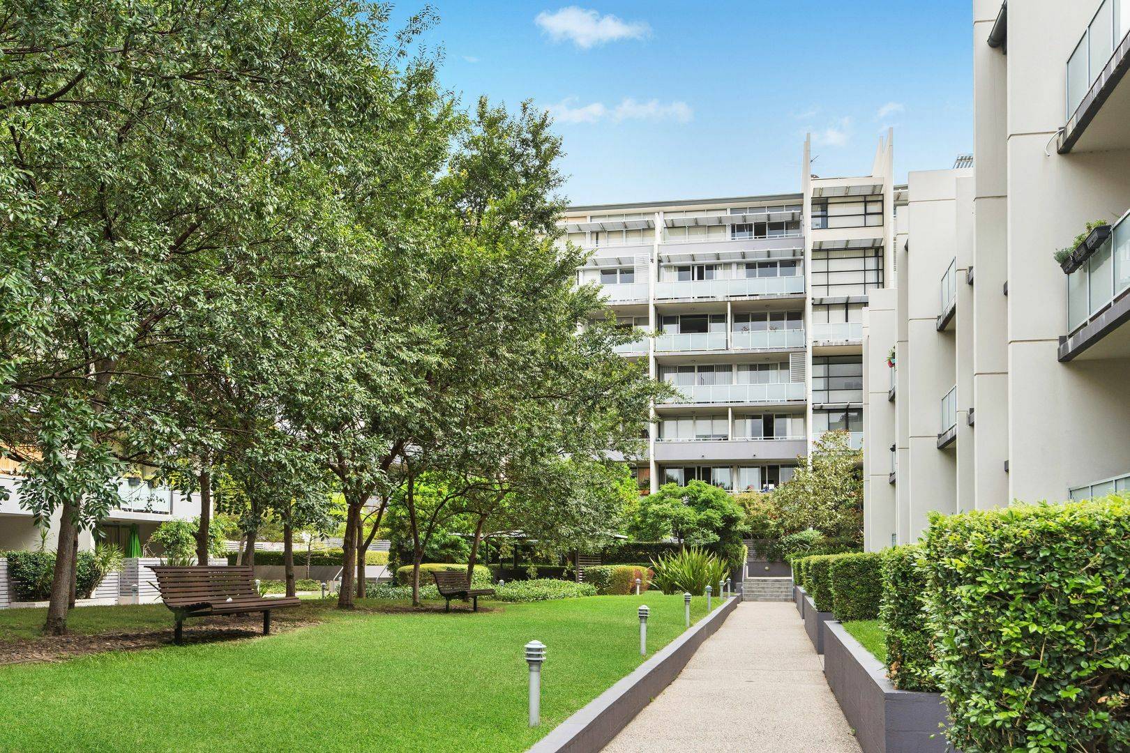 This spacious and sleek one-bedroom apartment is washed with an abundance of natural light and offers a stylish yet practical and great living experience. The airy living/dining area is enhanced by floor-to-ceiling doors, further complimented by the serene outlook from your large balcony, over the leafy internal courtyard.