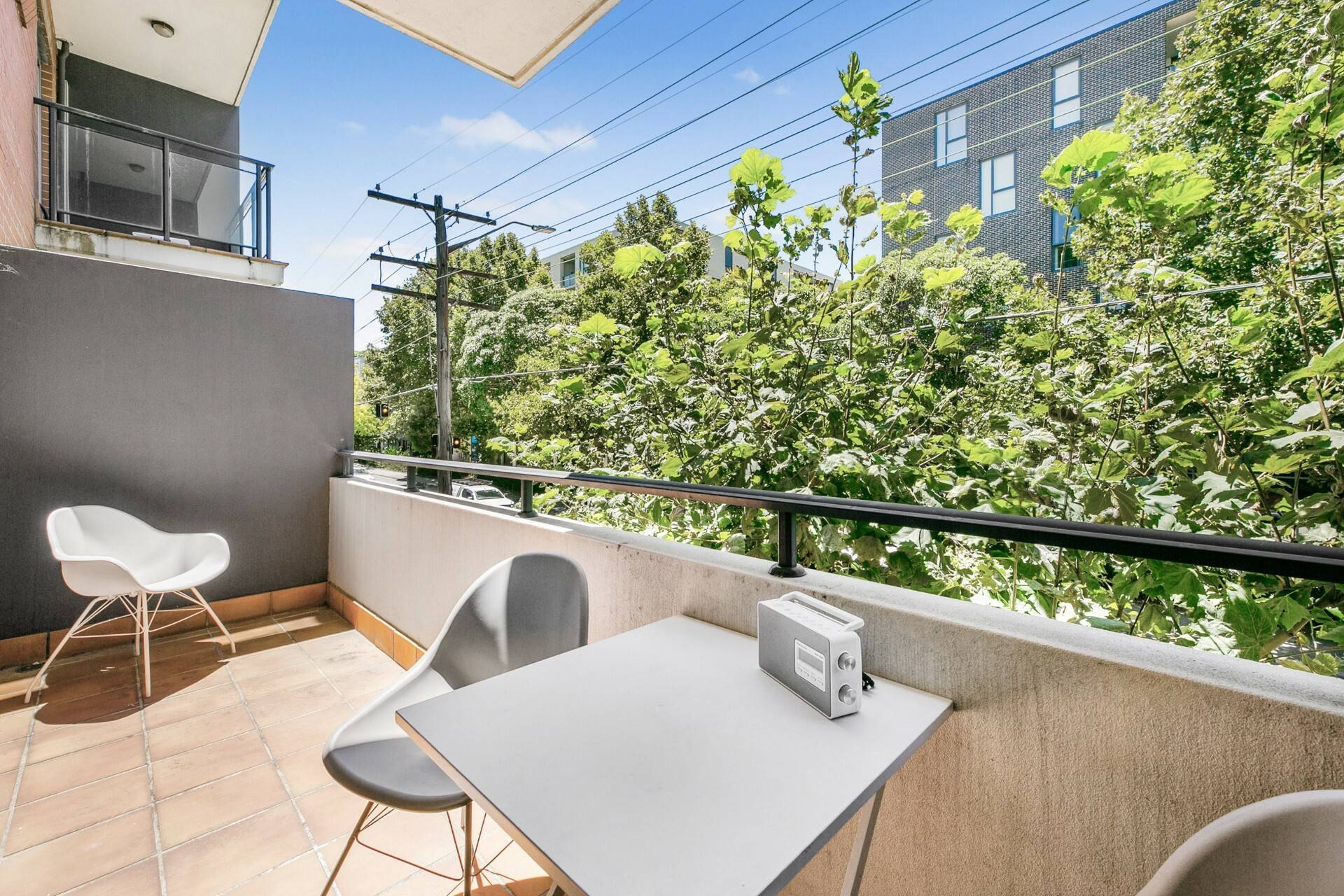 - Twelve square meters covered balcony facing private leafy courtyard